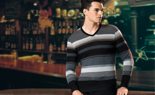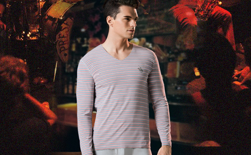 彩條自由裁 B274513 男彈力彩條無(wú)痕V領(lǐng)套裝